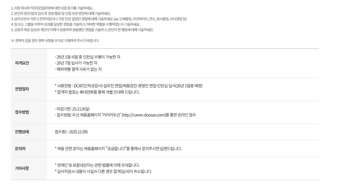 | ‒ | (주)두산전자사업 기술직 인턴 채용 안내. |