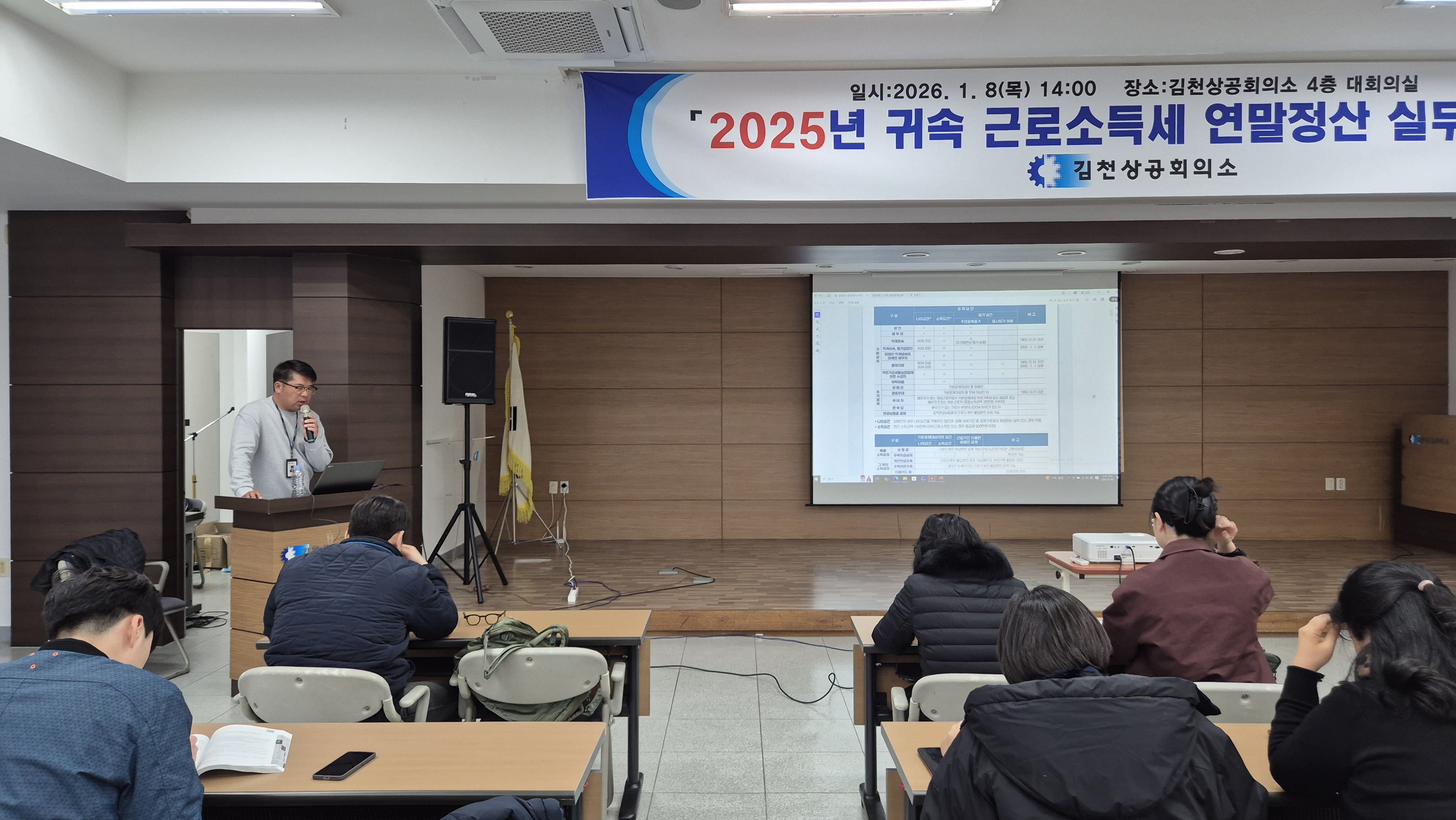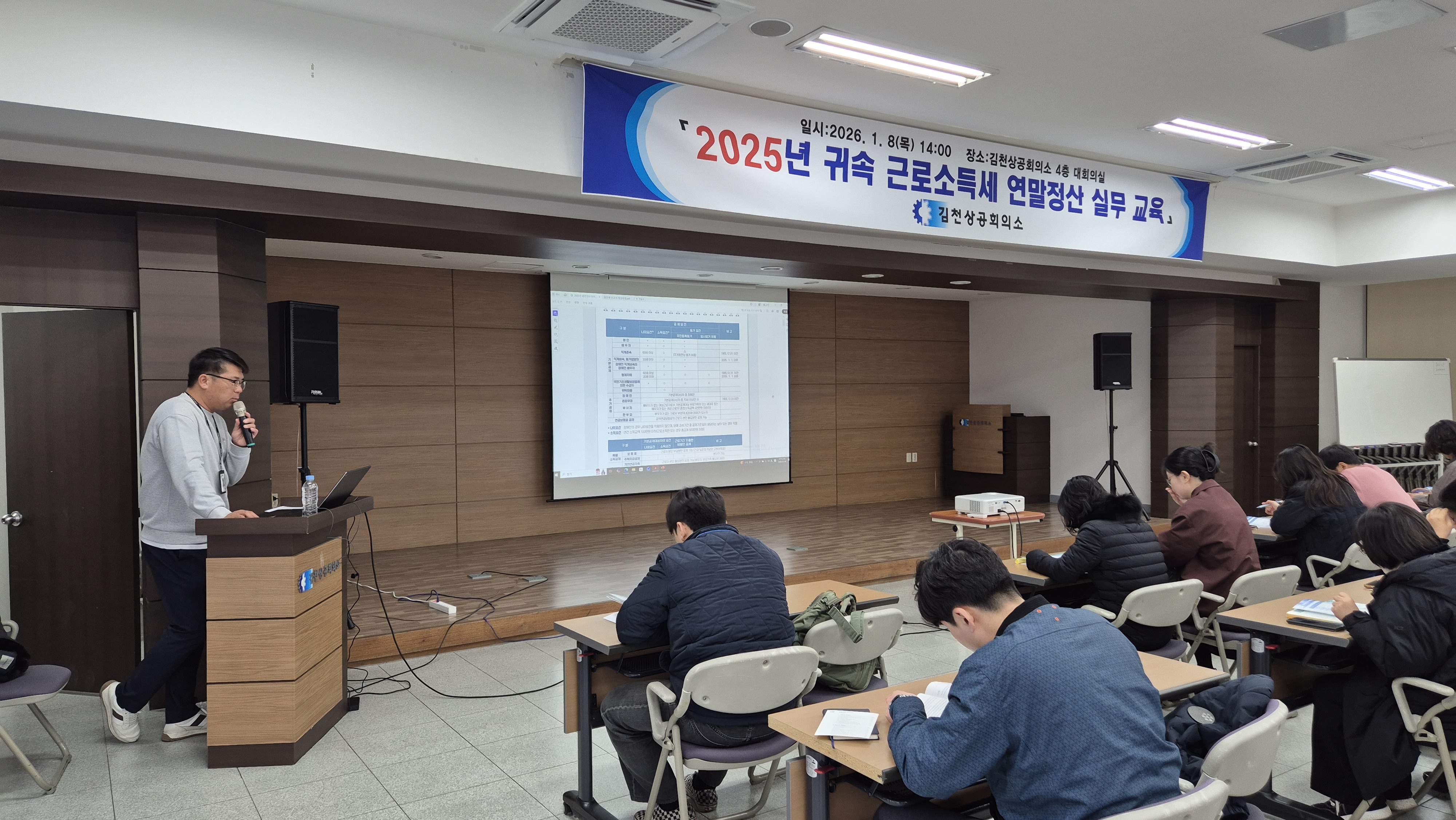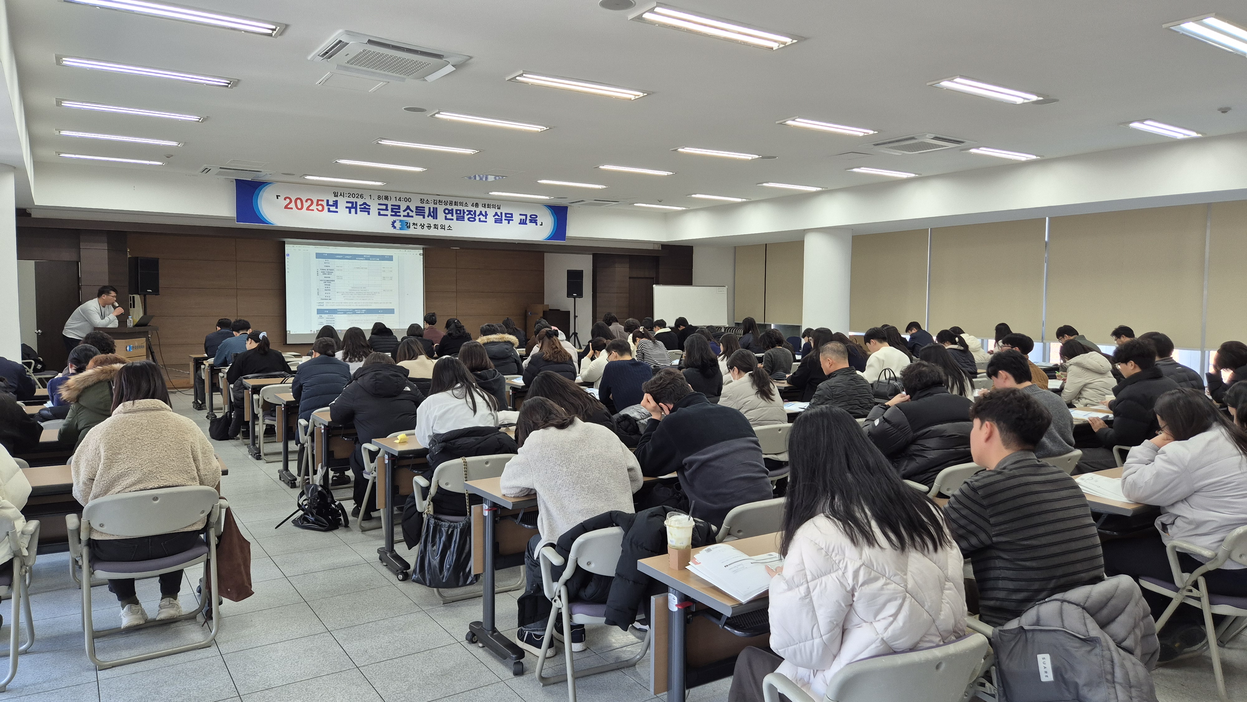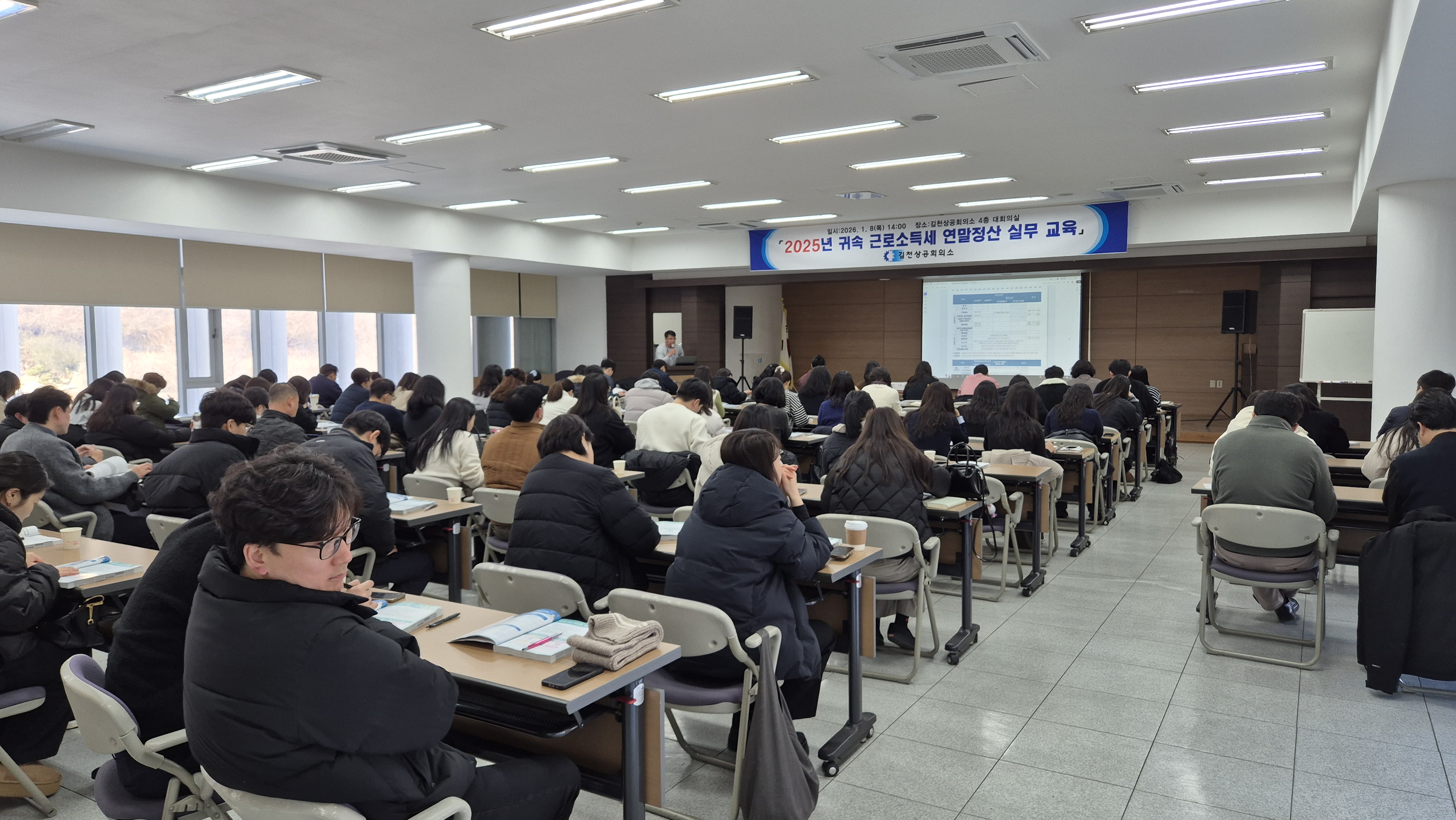 김천상공회의소(회장 안용우)는 김천세무서와 공동으로 지난 1월 8일오후 2시 4층 대회의실에서「2025년도 귀속근로소득세 연말정산 실무 교육」을 실시했다.
