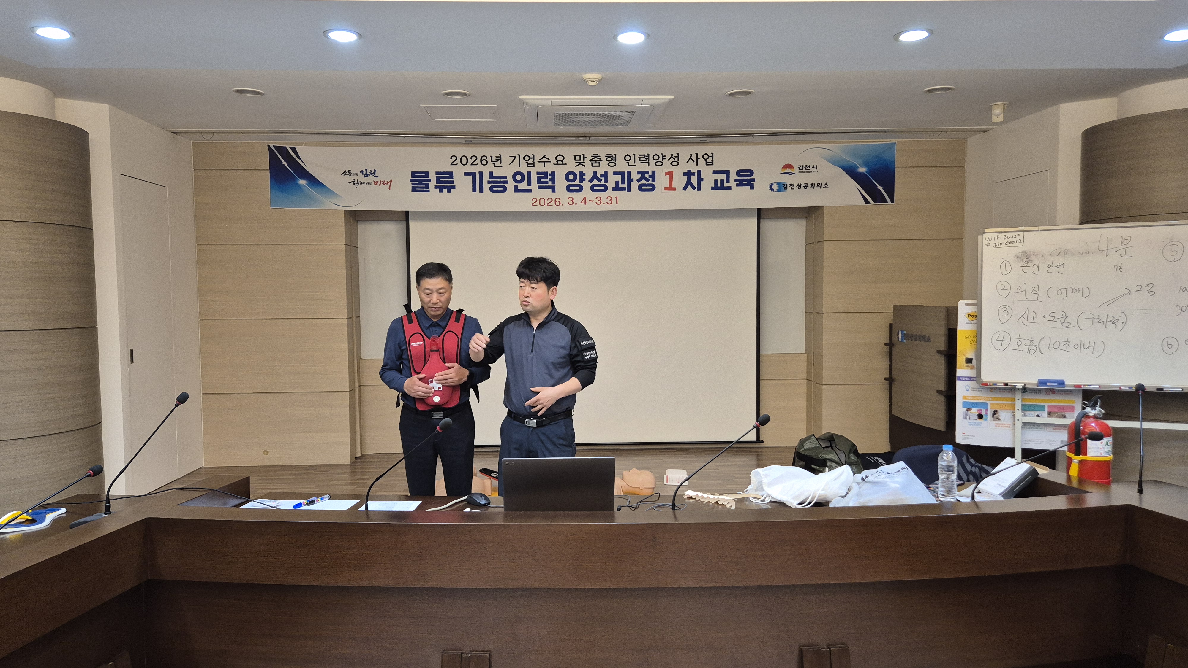 김천상공회의소(회장 안용우)는 지난 3월 12일 ‘2026년 기업수요 맞춤령 인력양성사업’의 일환인 ‘물류기능 인력양성 과정’의 1차 과정 교육생을 대상으로 취업역량강화 및 산업안전 관련 특강을 실시했다.