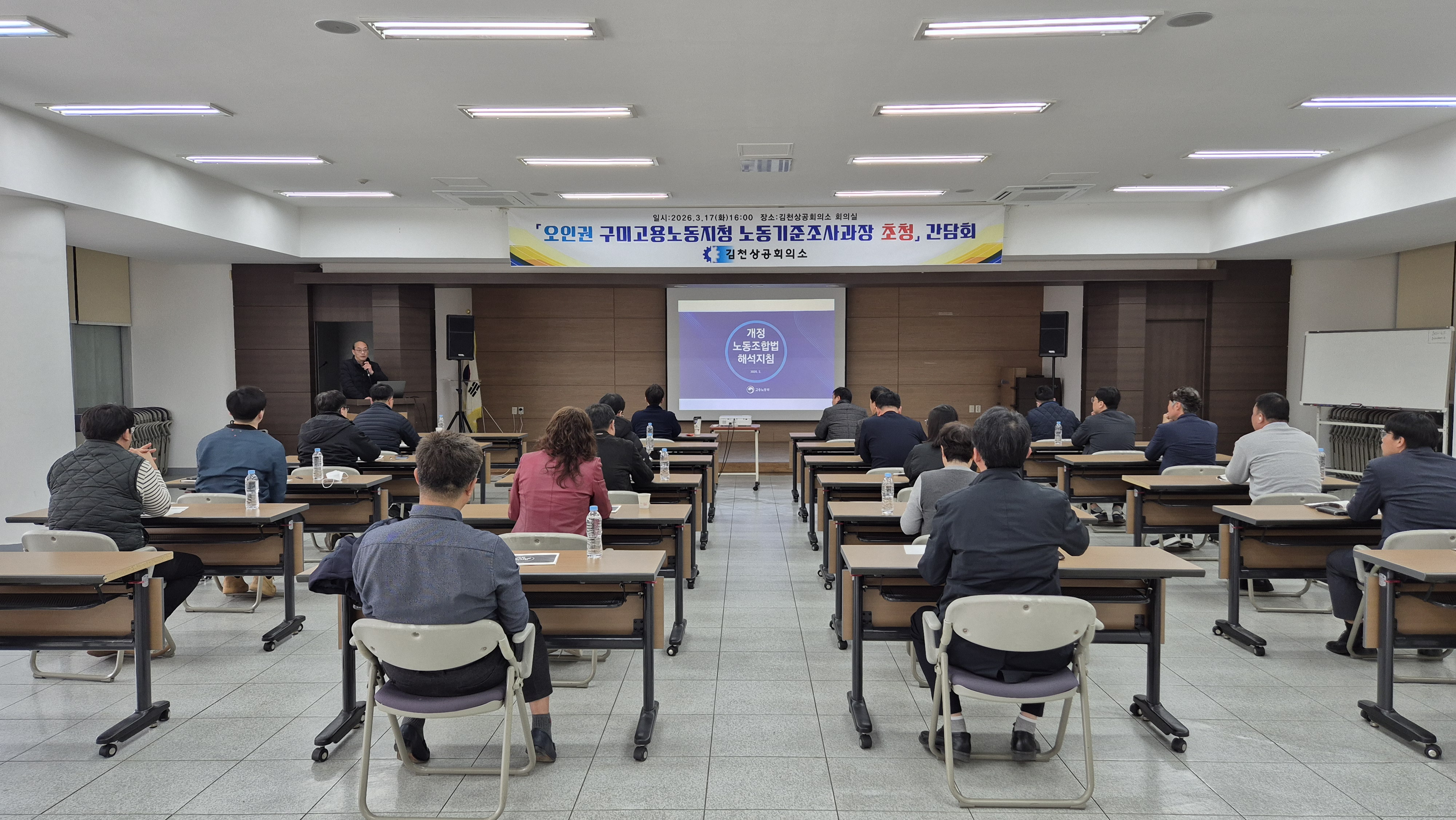 간담회의 주요 내용으로는 개정 노동조합법 해석, 원·하청 상생 교섭 철차 메뉴얼, 26년 근로감독 방향 등 변경된 내용과 실제 판례 및 사례를 예시로 들어 자세한 설명을 가지며 이후 질의·응답시간도 가졌다.