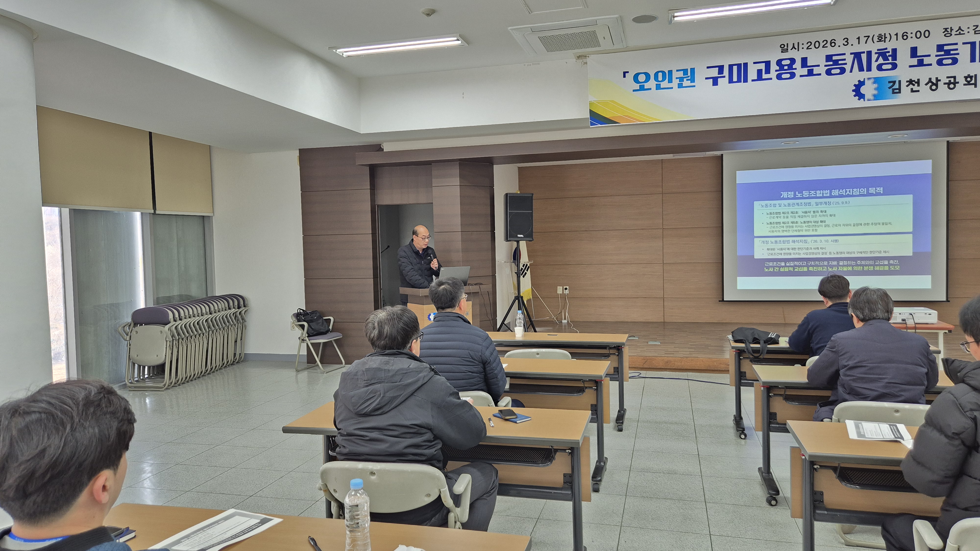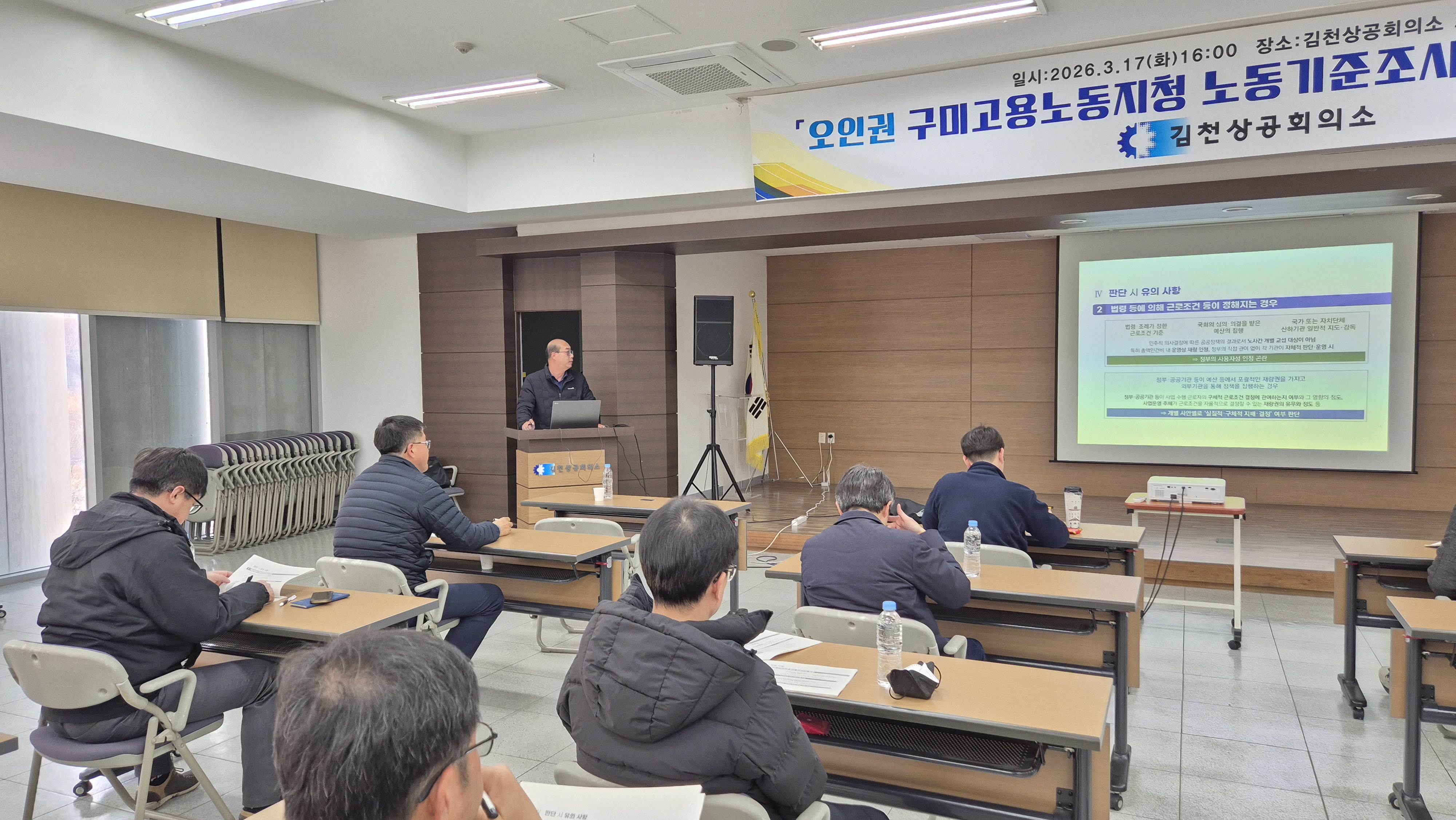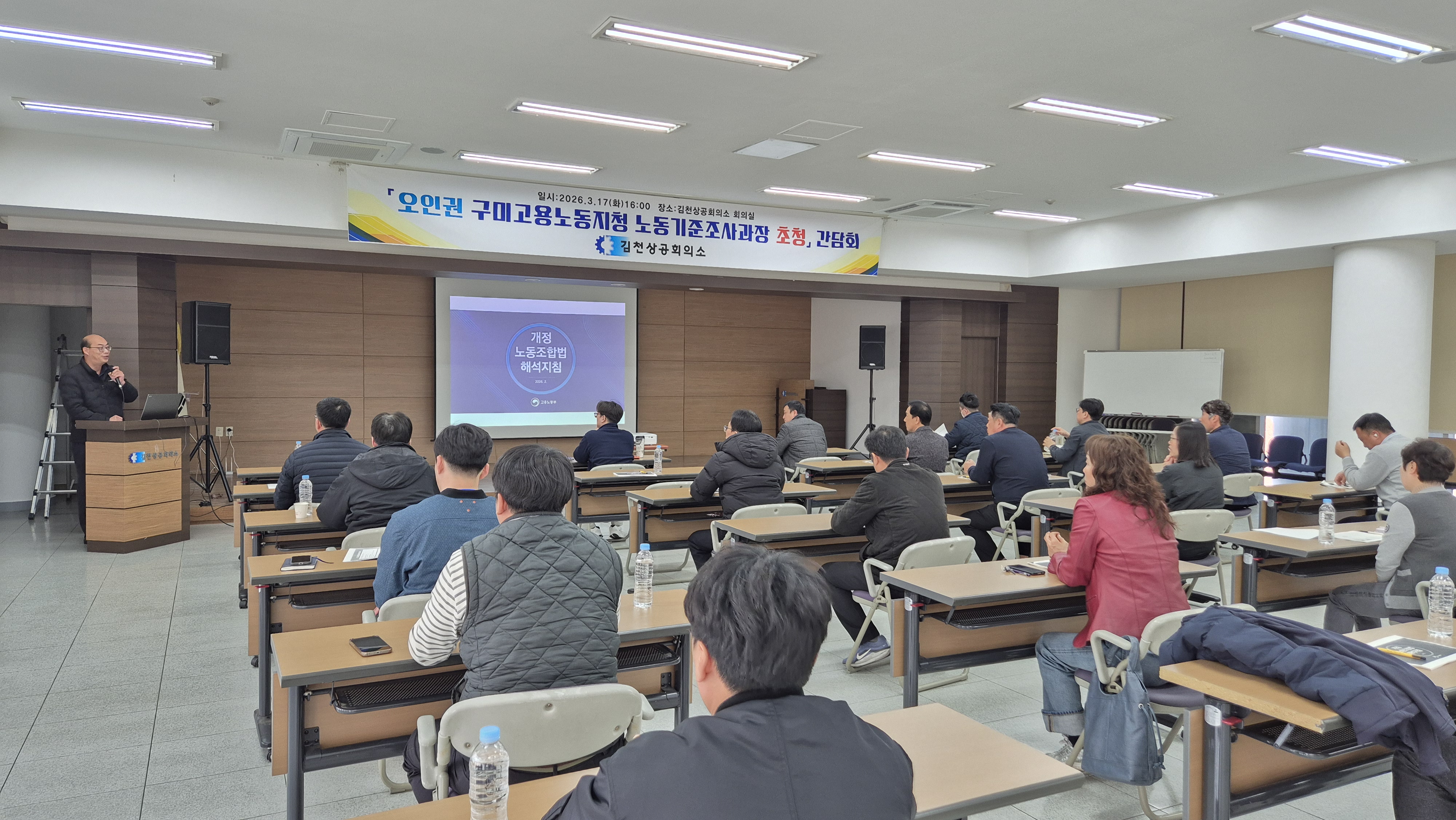 김천상공회의소(회장 안용우)는 지난 3월 17일 본 회의소 4층 대회의실에서 「오인권 구미고용노동지청 노동기준조사과장 초청 간담회」를 진행했다.